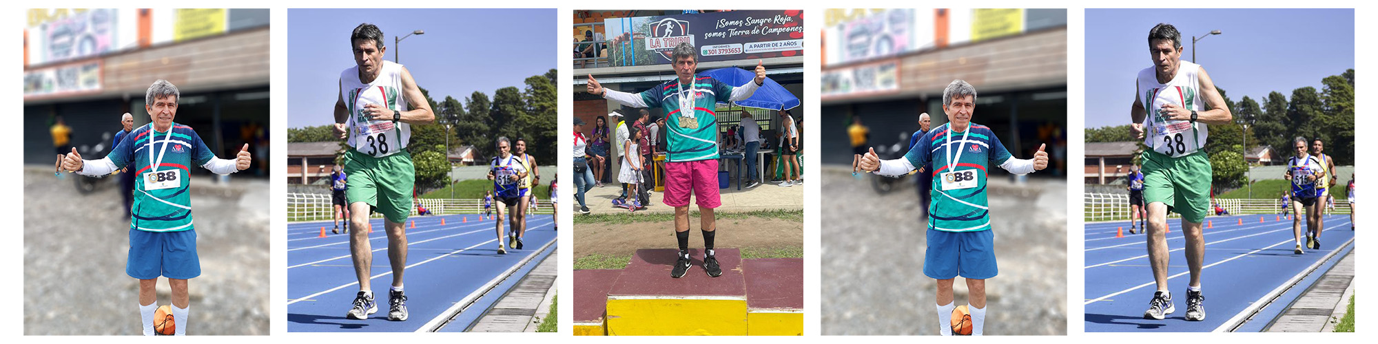 Ver jubilados en los parques hablando de canosas nostalgias, inventariando enfermedades ajenas, intercambiando agripados relojes, o renegando del bostezo del tiempo que detuvo el instante del almuerzo, no es novedad alguna. Pues Miguel Ángel Echeverry, a sus 71 años, rompe con esa pausada manera de ver las agónicas horas envejecidas porque para él, el atletismo es el único medicamento divertido.